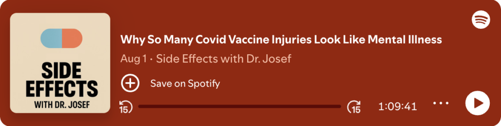 In some corners of the internet, you may find discourse between patients dealing with anhedonia, depersonalization/derealization, depression, and anxiety. Additionally, you may even come across conversations about complete personality changes. You may be experiencing these things yourself. On the Side Effects with Dr. Josef podcast, Scott Marsland discusses why so many of the Post-Vaccine Syndrome injuries look like traumatic brain injuries.